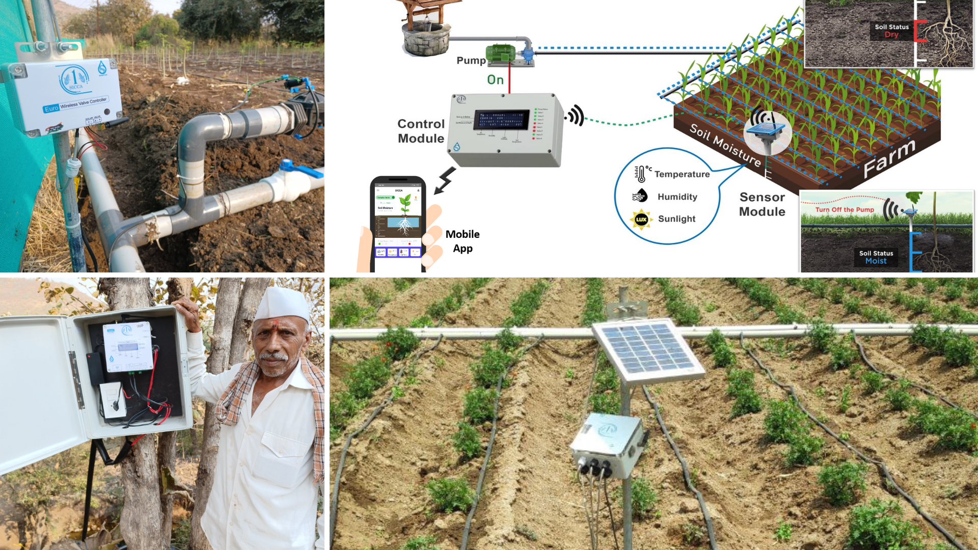 have to be measured at four levels? For the simple reason that the crop’s root zone will change as it grows and matures. The information regarding the soil moisture at different depths is available to the farmer on a mobile phone and depending on which area needs to be irrigated, the farmer can switch on the pump from wherever he or she is and just that particular valve alone. The sensor will give a signal to the controller that will be placed close to the pump to turn on and turn off the pump. The valves are wirelessly controlled. The system will cost ₹20,000-25,000.