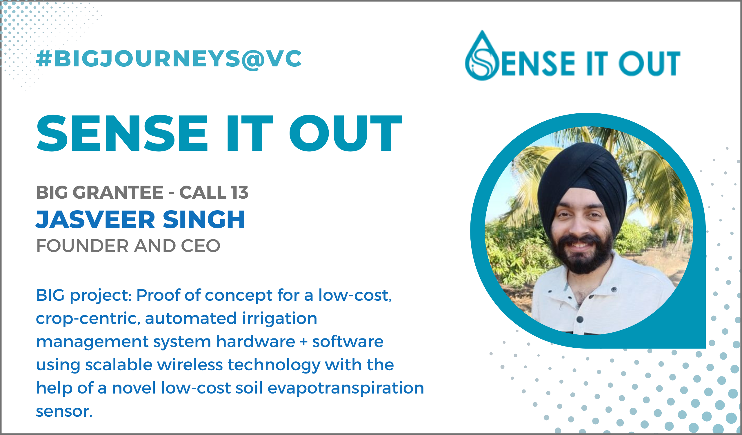 “You need to plan out things well,” says Jasveer Singh, Founder and CEO, Sense It Out Intelligent Solutions, a Pune-based venture that is into smart irrigation, when asked what would be his advice for founders who plan to apply for the BIG (Biotech Ignition Grant) Scheme for startups. “I got it in the third attempt. Which means that if I have to get it in the first attempt, I need to understand the market well, understand the need well and, most importantly, understand how to plan the 18 months (the duration of the BIG). Also, what is your plan to develop (your product), do you have a detailed plan and understanding whether it will be feasible or not,” says Jasveer. Ideally, he adds, the founders should plan that their projects get over in 12-15 months so that they have a cushion of those extra months in the 18-month grant period. Expenses do not stop and having that cushion is always helpful. “If I would have done that, I would have been better. If I look back and I want to tell myself, I would say this,” says Jasveer, an M.Tech in Electronics Systems from IIT Bombay.